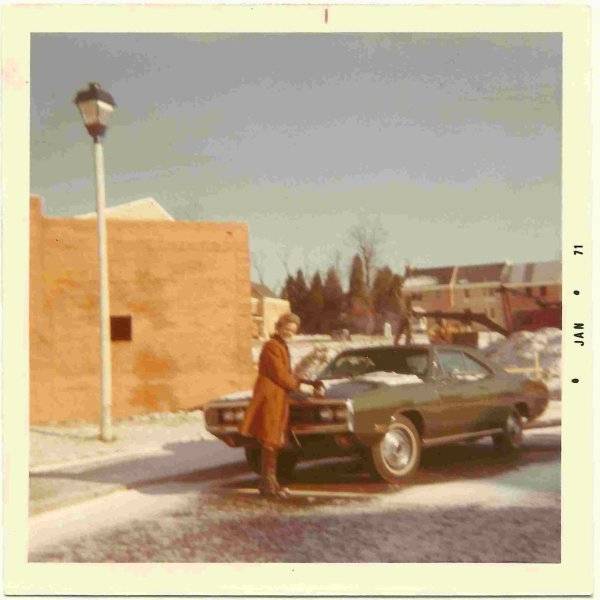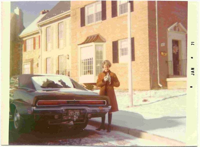 Mom with her '70 500 (and the beagle from hell, Herman...)