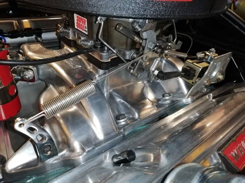 The OP has a 2 barrel throttle bracket and kickdown linkage with a 4 barrel.