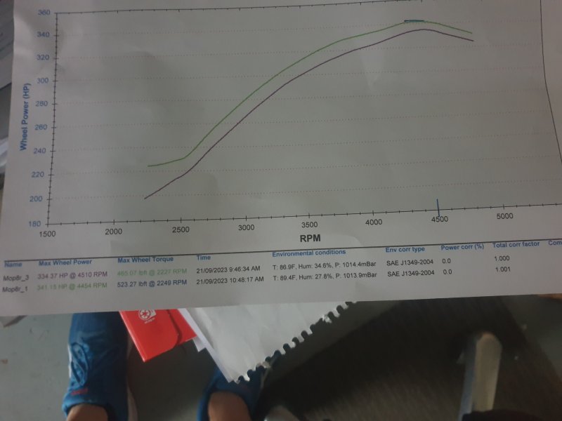I was surprised the power started tailing off by 4,500rpm, I'll have to ask him about that, maybe needs a bigger cam?