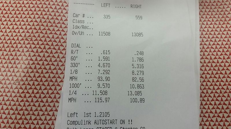 1972 400 block bored and stroked to 469. Eagle crank and Manley rods, Diamond pistons, Stealth aluminum heads out of the box, Comp Cams solid cam .540 lift 286 duration, Torker intake, Quickfuel 950, Hooker Super Comp headers, MSD 6al, MSD distibutor, 727 trans reverse manual valve body, 4200 stall, 8.75 rear with 3.91's. On slicks I'm running consistent 11.5's at about 116 mph. All this on worn out factory leaf springs, this winter I'll throw in my super stock springs that I have laying here.