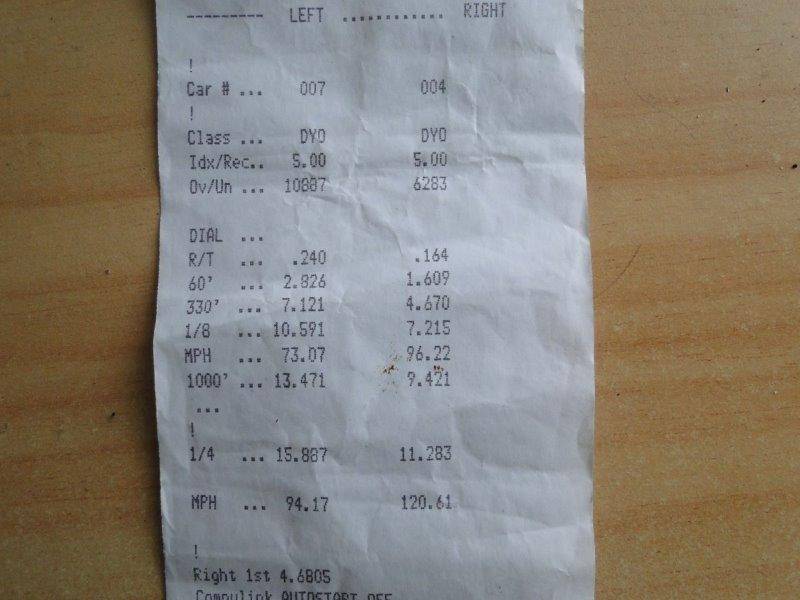 It's those weird " Hee- my heads"Manual transmission cars will mph a little better than an auto car with the same power to weight ratio, but agree with you. INTMD8 has 1-2 mph on my 1/8 mile but almost 7 mph in trap speed.