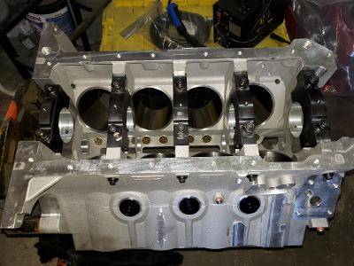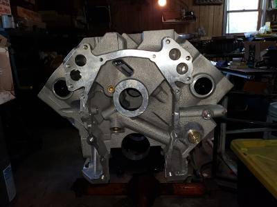 572" MP Iron Block. Bill Mitchell (BME) Forged Aluminum Rods, JE 14.5-1 pistons, Hansen Stage V heads flowing 540 and Hansen Stage V Rocker Arm assemblies. Comp Roller with .816 lift, .298 duration @ .050. Manton push rods. Manley triple springs and Manley Titanium Valves. Sheet Aluminum Fabricated Tunnel Ram with 2 1050 Dominators modified by Braswell.