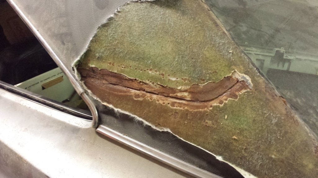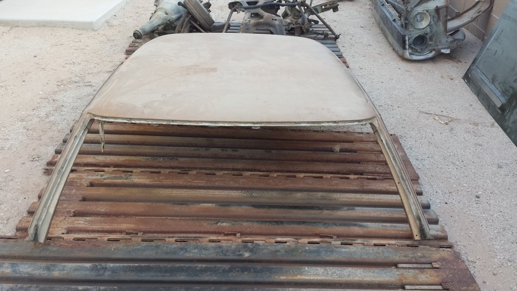 The roof...vinyl and there was some crunchiness and bubbling arond the rear panels. He said he has a spare roof for it so I suspect it may be bad too.