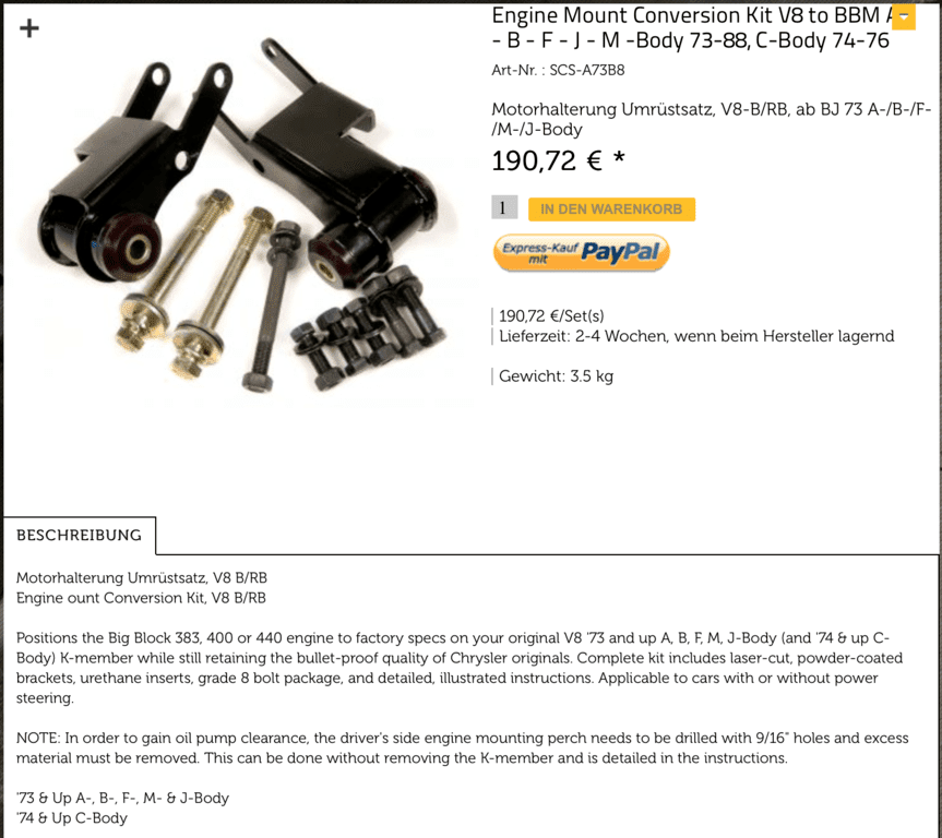 I´m trying to put in a 440 engine with a A833 manual transmission.