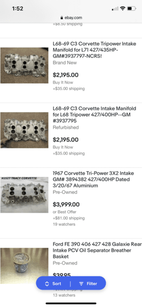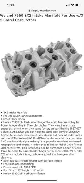 so finally the tri power Chevy carb has a market if I was y’all I’d be looking for Holley tri power on thr cheap corvette that what I’ll be doing.