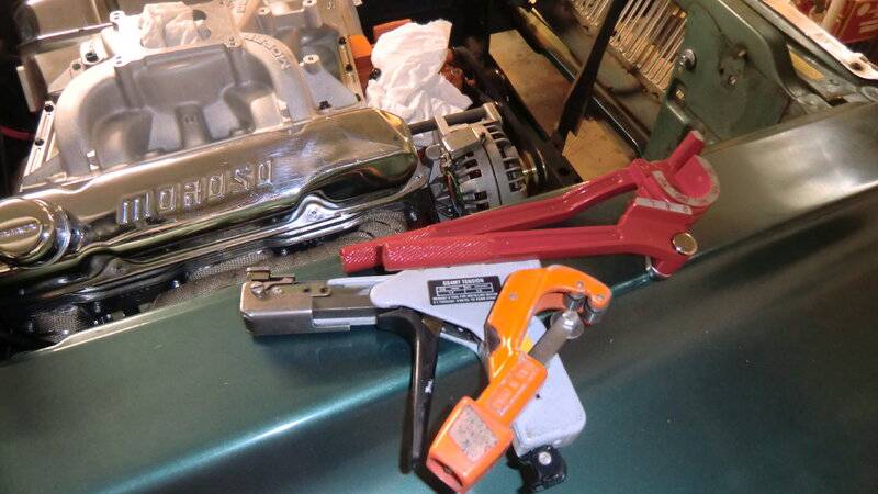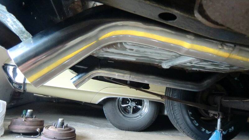 the inline 6 got only one single exhaust pipe needed another bracket found at summit Goodmark GMK2120517707 for challenger.started to make fuelline to Holley sniper efi,using the original line for returning fuel.