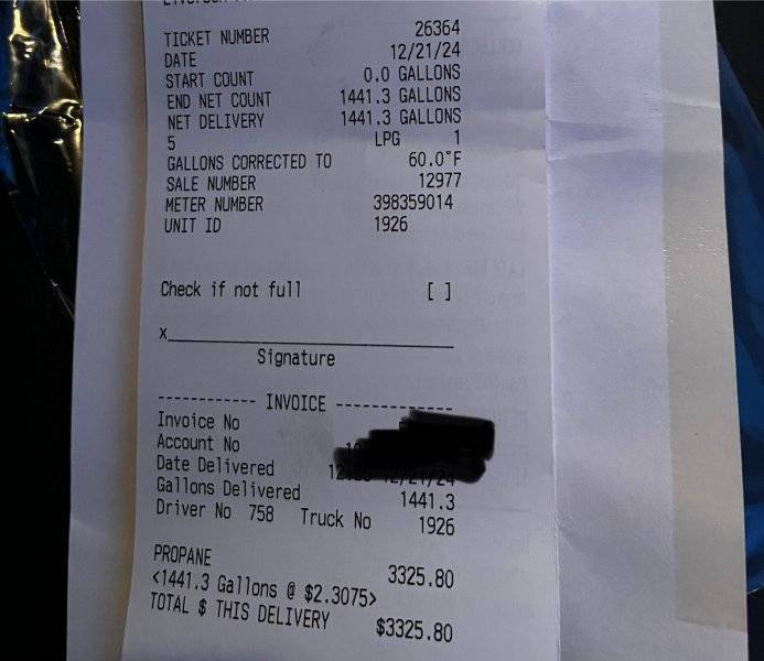 holy fluck I'm in at 1.80 a gallon, they must have some seriously deep pockets with that amount of fuelHere is a propane ticket for almost 4 weeks at the mansion I manage. They last filled it right before Thanksgiving but there supposed to be there every 2 weeks. Twin 1,000 gallon tanks so each tank had about 80 gallons left… To close for comfort as it was getting colder so they got reamed for not showing up on time. It was not really even that cold it’s just a huge place over 11,000 square feet and very old…
