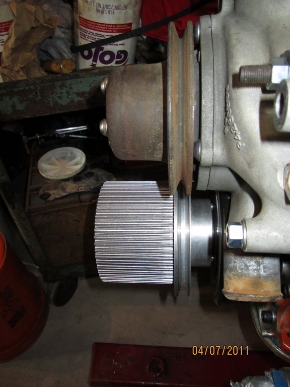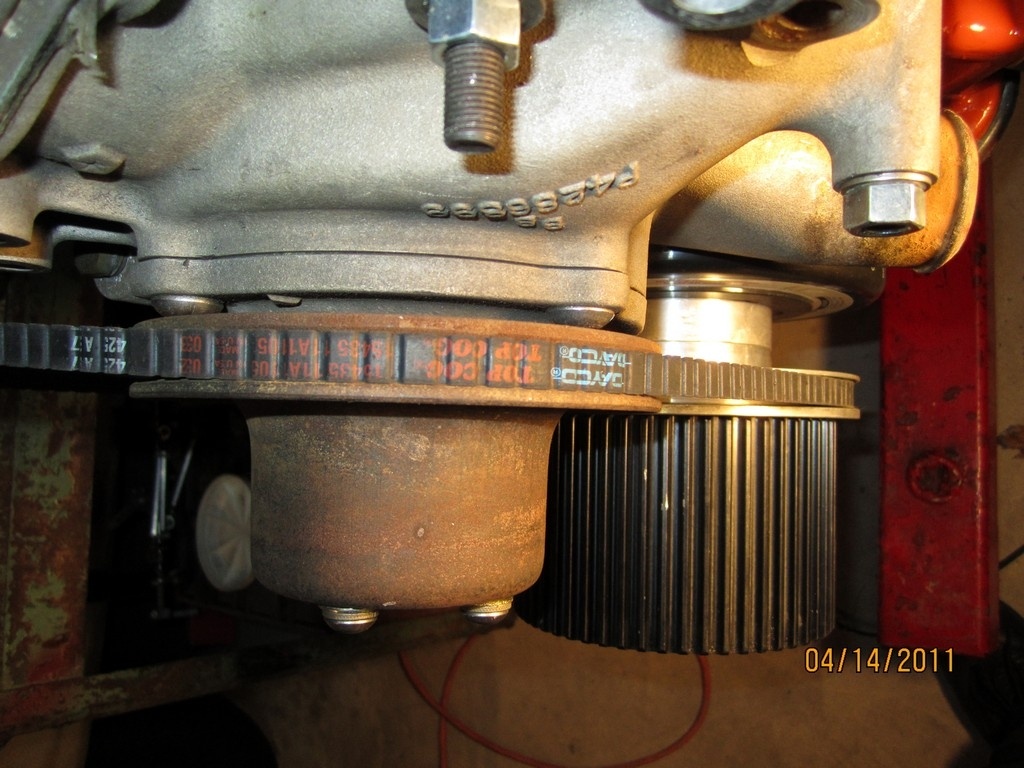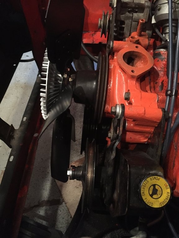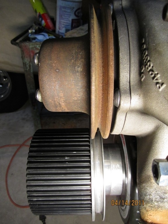 Cool. The reason I said that about the PS pump,the way it's mounted I don't see how it can be moved forward or back.Looking at you pic,the waterpump and alternator line up,,,,,the only thing you changed was the dampner and crank pulley.Was there2 belts?? One for the WP & alt and one for the powersteering?
