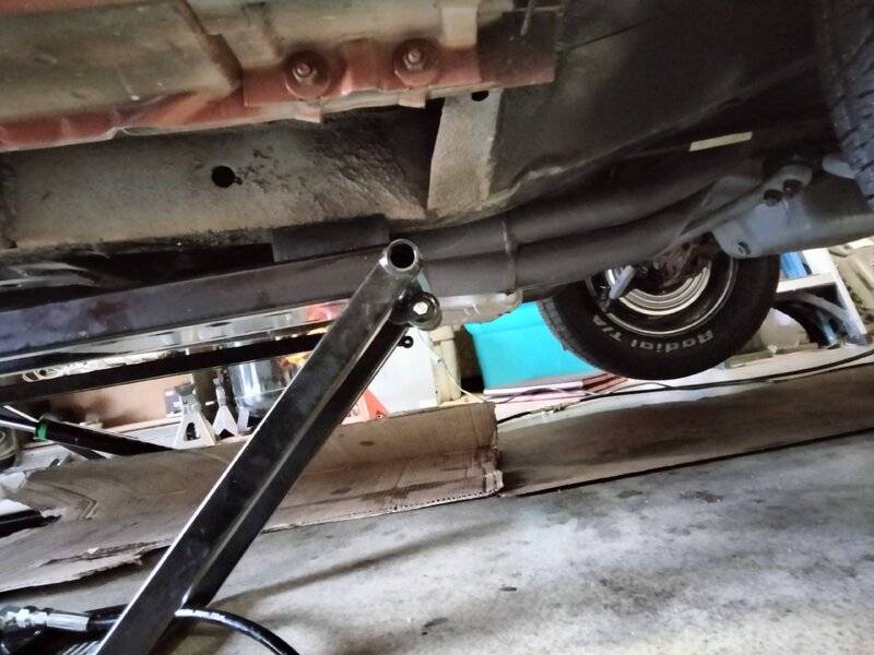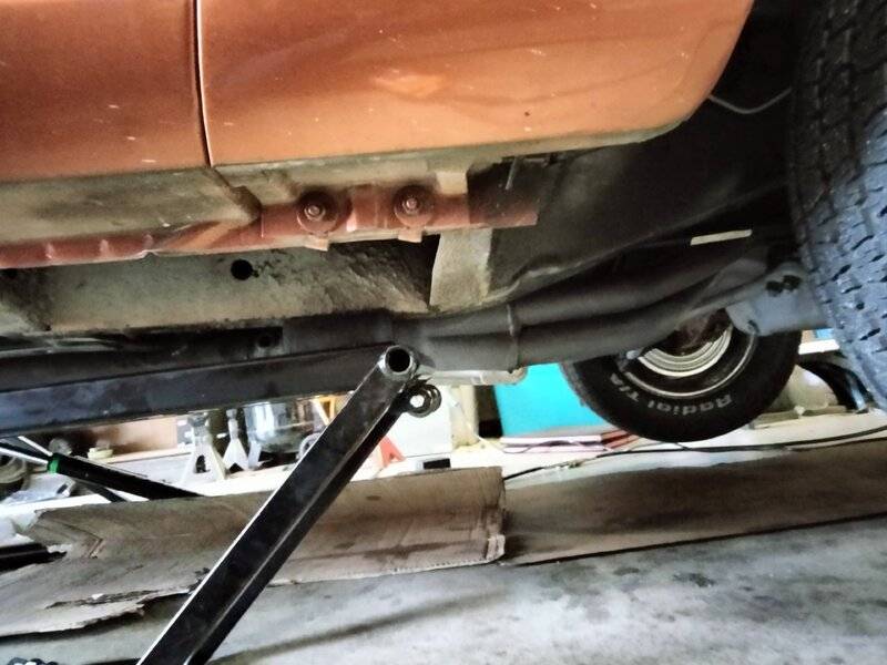 Close up pics of the lift points. With the subframe connectors I'm able to move the rear lift point forward about 2 - 3", maybe that's the difference. Also the battery is in the trunk. I pushed down on the front bumper and lifted on the back bumper and the car is steady.