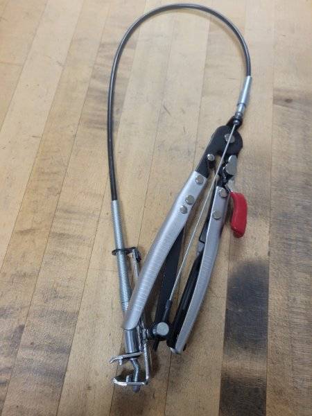 I'm working on my 440 today, and it took me 35 minutes to get the ring clamp off of the upper connection of the lower radiator hose. These things are so hard to work with if they're not in a perfect position to get the removal pliers onto them. They twist and move around and the pliers keep popping off. These are a good set of pliers too. Klein tools brand, purchased from McMaster-Carr. Maybe someone knows of a better tool, I'd really like to get my new hoses on with the original style ring clamps. The tool I have is pretty useless. If you use them in the normal position, the handles are too far apart and you can't squeeze them to get the ring opened up. If I use them in the slipped position, I get the leverage I need to open the rings but they don't open enough to go over the lip on the fitting. I posted a picture of them for reference.