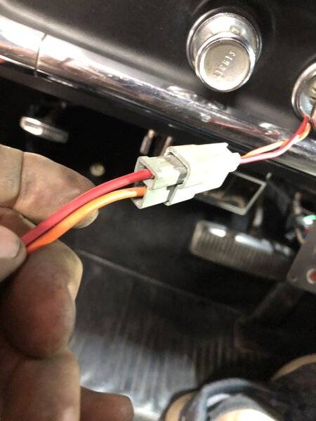 Should just unplug, no secret locking clips or fasteners. From the picture, 66-67 Coronet.