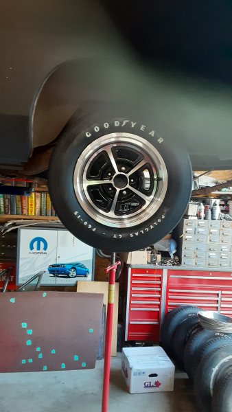Wish Ma Mopar had those back in the day. The year after the dealer took delivery of my GTX, he ordered an identical 1970 model, which wore the newly available 15" Rallyes. No dog dish caps on that one.The car looks great with the chrome Magnum 500 wheels on it! I recently bought these Dynacorn Magnum 500 wheels for my Daytona project I wanted the look of 14 inch Magnum wheels with trim rings, but wanted to run 15 inch Polyglass tires.