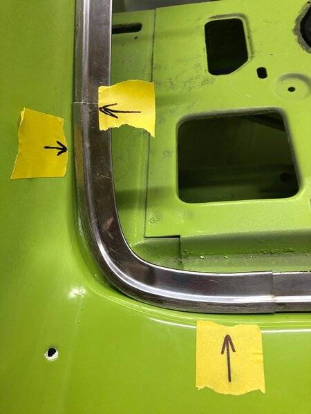 The side and bottom measurements are dead on with the photos I posted. I would rethink your measurements. Your top looks about right.I recently put my car back together and my rear window moldings fit perfect.