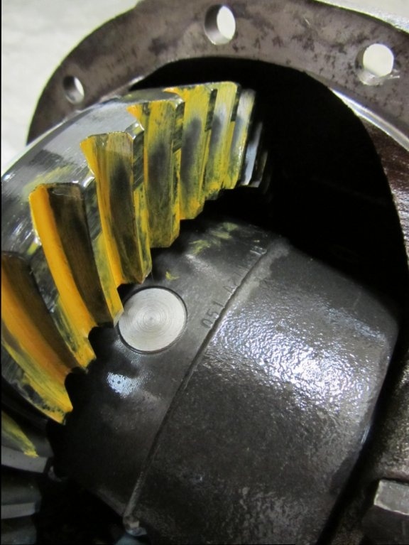 Fortunately there was enough lead paste still in the gears that I could coat a few teeth. Problem is that this Lucas Gear Lube really clings to everything and is extremely slippery - so the pattern is not the best and may have to use your imagination a little. The coast side is definitely off on the heel - which is a lot different than when he set it up.