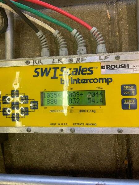 My Challenger is 3760 in full race/street trim at 54%. Depending how much power you are making. Today's higher horsepower vehicles are adding more nose weight to help keep the front ends down from power wheel stands.