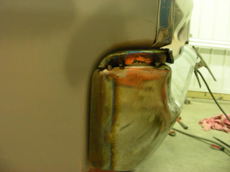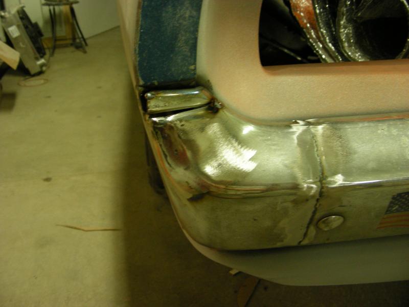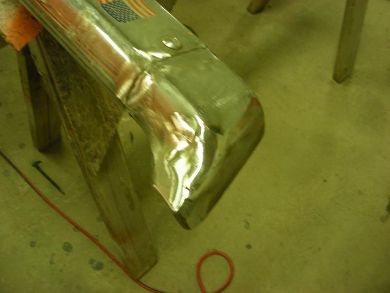 There was a pretty big gap at the top of the bumpers on both sides so I added 3/4" to the tops as well and then heated the rolled lips up red hot and hammered them out flat which took up what was left of the gap around the bumper and the quarter pocket. The height was next (which may very), My bumper had a large gap under it so I used a junk bumper and took 5/8" off the bottom and grafted it onto mine to close that gap. Last was welding the brackets on and welding all of the bolt holes shut.