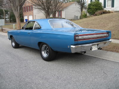 Ever since I was Kid, I have thought the 68-70 Road Runner to be the coolest car known to man! I finally managed to fill that dream 3 years ago when I found this gem laquishing in Arizona. The car was restored 9 years previous and had an engine failure after running only 30 miles. The owner at the time put a 361 in the car to make it mobile but the 383 that came in it was toast. I bought he car with the original block and had the 383 short block built by a loacal speed shop. I installed a set of 440 ported and polished heads that they had taken on trade and this thing make 425 HP and 416 Ft. Lbs of tourque.