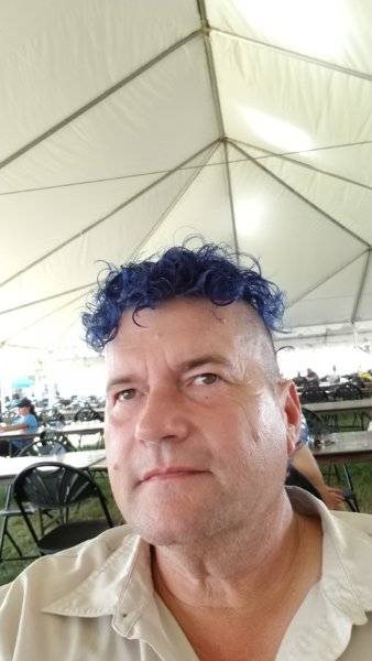 The purple Mohawk is an annual "event". The year I got my Roadrunner I had not had a break or vacation in over 4 years. My 70 year old former Marine boss had me working 50 plus hours a week, a lot of weekends too. I decided that I would spend the entire week of Crusin the Coast in Mississippi. The day I left for Crusin the Coast I decided to get a Mohawk, thinking that every morning when I looked in the mirror I would KNOW that i was on vacation, because there was NO WAY my boss would let me work and sport a Mohawk. It was popular with the folks crusin, and helped me mentally transition quickly into a vacation mindset. Before going back to work, I have to cut all of my hair off, and start growing it back for the next year. The 2nd year and ever since I get my Crusin the Coast Mohawk, but I have it dyed purple to match the head feathers of the Roadrunner cartoon bird.