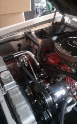 The line is made out of stainless that you can buy from Jegs or Summit. Welded up to where the hard line met the radiator and t-stat housing, cut about 3-4" piece of hose to use as a coupler/ isolator the just heated up the Gator Grips... I think it looks different...she gets a lot of compliments on it....