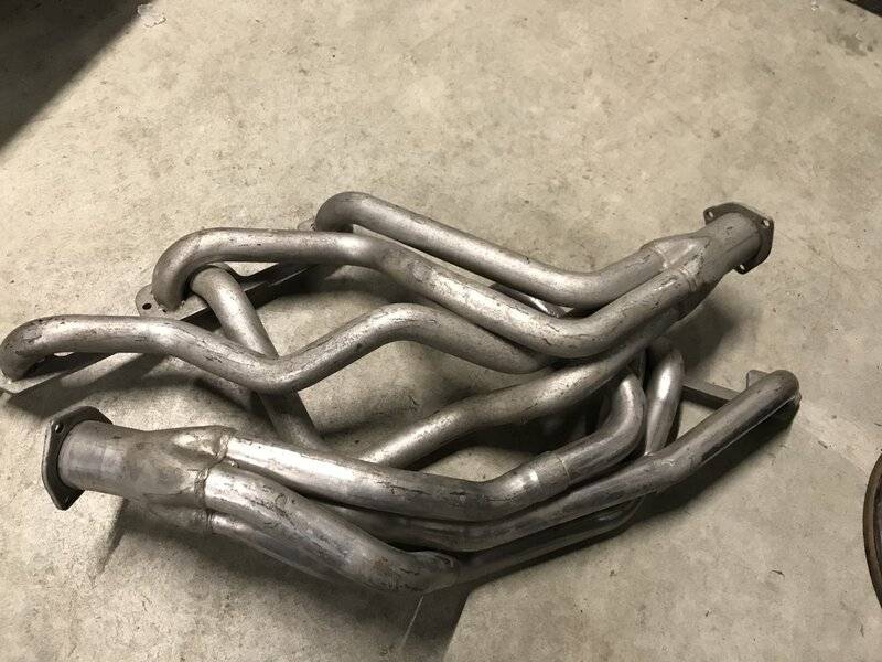 Doug Thorley small block headers new old stock fits 68 to 74 b bodies and 70 and up E bodies and maybe others as well . I believe these were made in 1977 in the USA $100 plus the shipping.