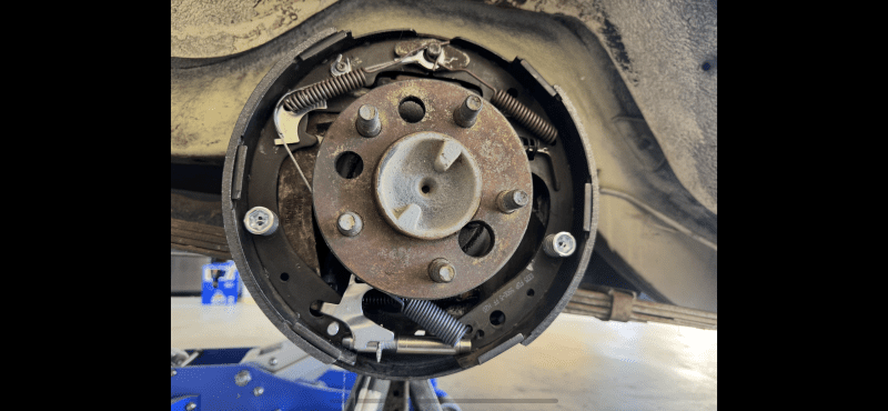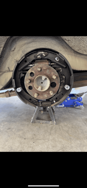 Last photo is manual adjust brakes. I assume you meant to make them self-adjusted. The lower spring needs to go into the big hole in the lead shoe. I know it doesn't look right, but, just loop it through (what looks like backwards) and it will stay. On a side note, make sure the cable guide hasn't slipped out of the hole in the shoe when you installed the spring. It's a common problem and the self adjuster won't work correctly if it isn't properly in place.