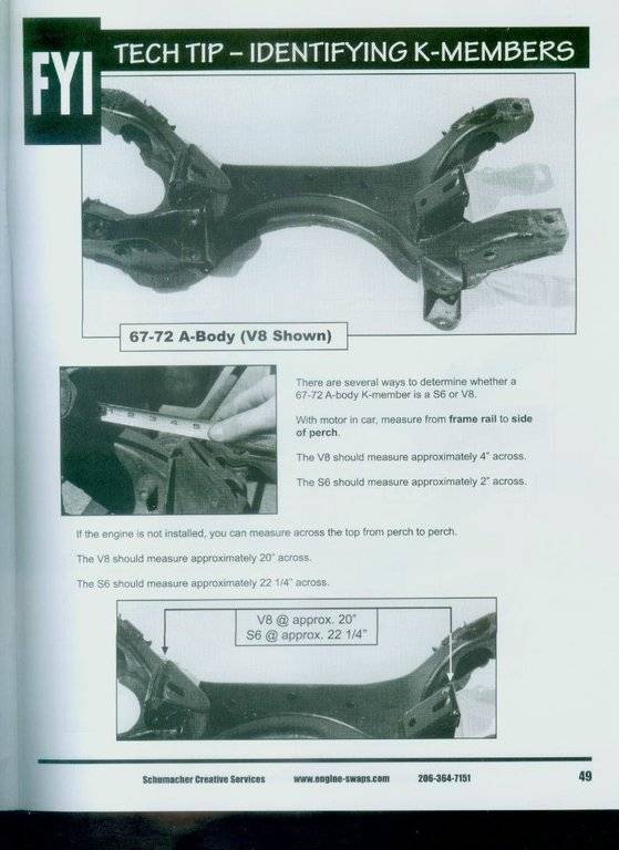 a. FIND A V8 K MEMBER INSTALL IT THEN GO BACK TO #7-D OF THIS LIST