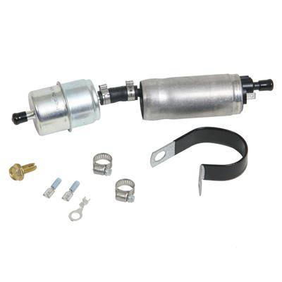 I took a look at a lot of small electric pumps and decided on the Airtex E8090. Its an inexpensive pump (around $35) and puts out 7+ psi which I figured was enough to supply my Holley 750 with enough fuel to fill the bowls in just a few seconds of operation.