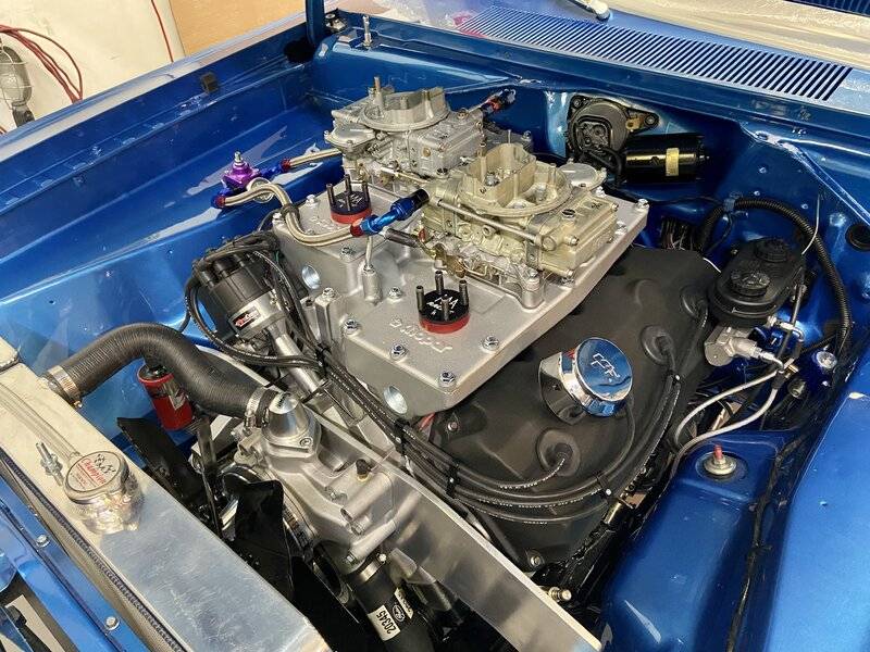 Hemi Holley 770 carbs with 1” spacers. Home fab’d linkages and burst valves.
