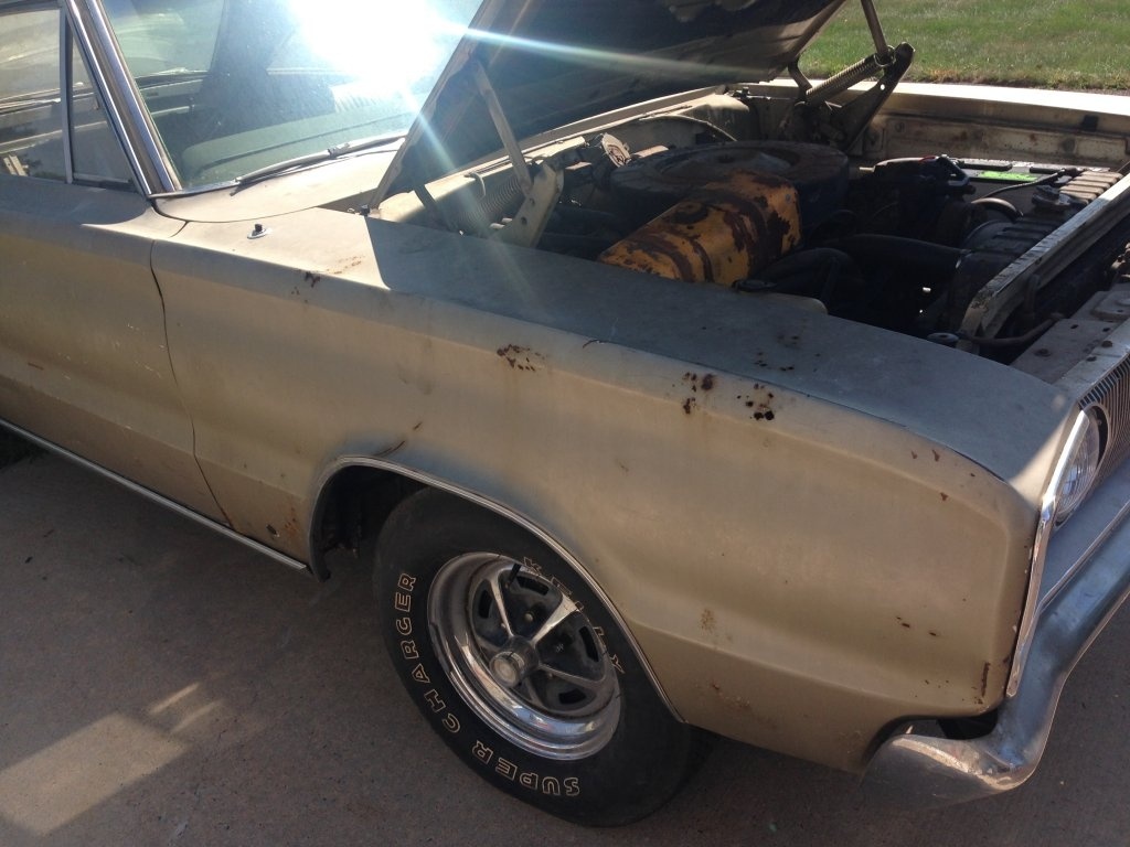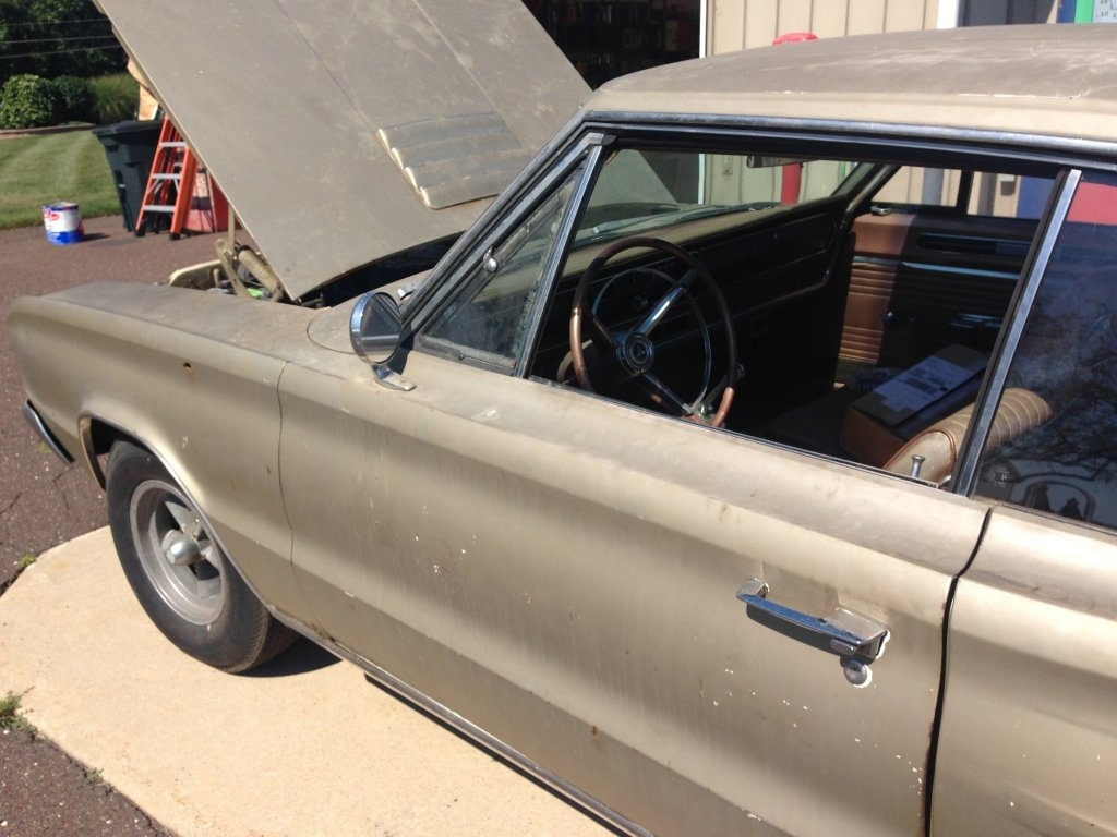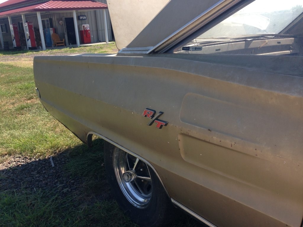 its a 67 r/t all original except one poor repaint, one owner even had window sticker and owners book, white with the copper dust interior, will be on the road for spring