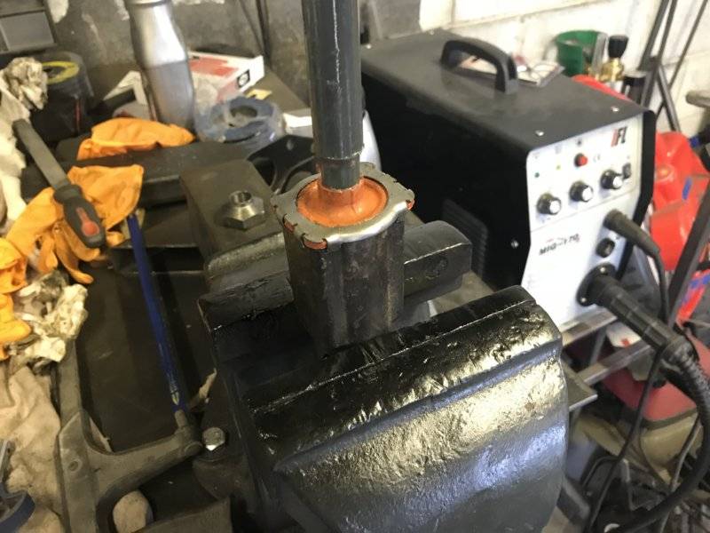 That works good too, if you have a way to hold the column up to the vise...that's how I do all my u-joints too