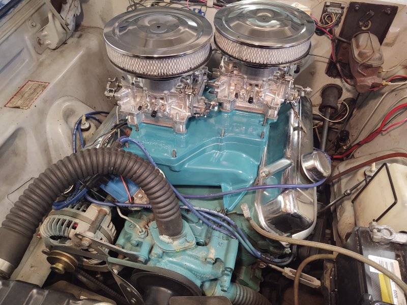 Going a different direction in my Nostalgia Super Stock build. Have an unmolested, probably never run, Edelbrock STR cross ram intake complete with new gasket and complete Enderle linkage. Unit was powder coated in old turquoise, but, from what I am told, that is easily removed. I put it atop my engine for clearance checks etc. but have never run it. Can include TWO matching AFB's which I purchased from Roy Johnson and had tumbled and rebuilt. (Don't know how highly modified they are, but knowing Roy they ain't stock.