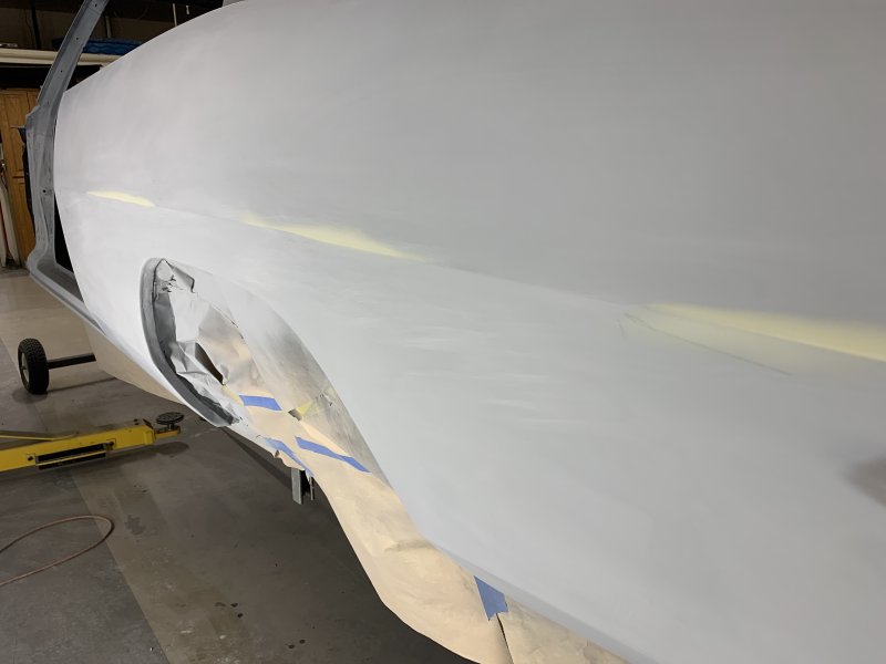 Nice to see it with some paint on it. I know all the bodywork was done, but it seems like such a huge step forward.