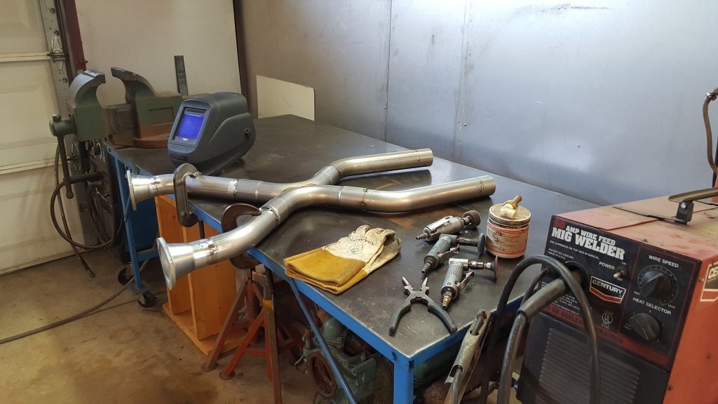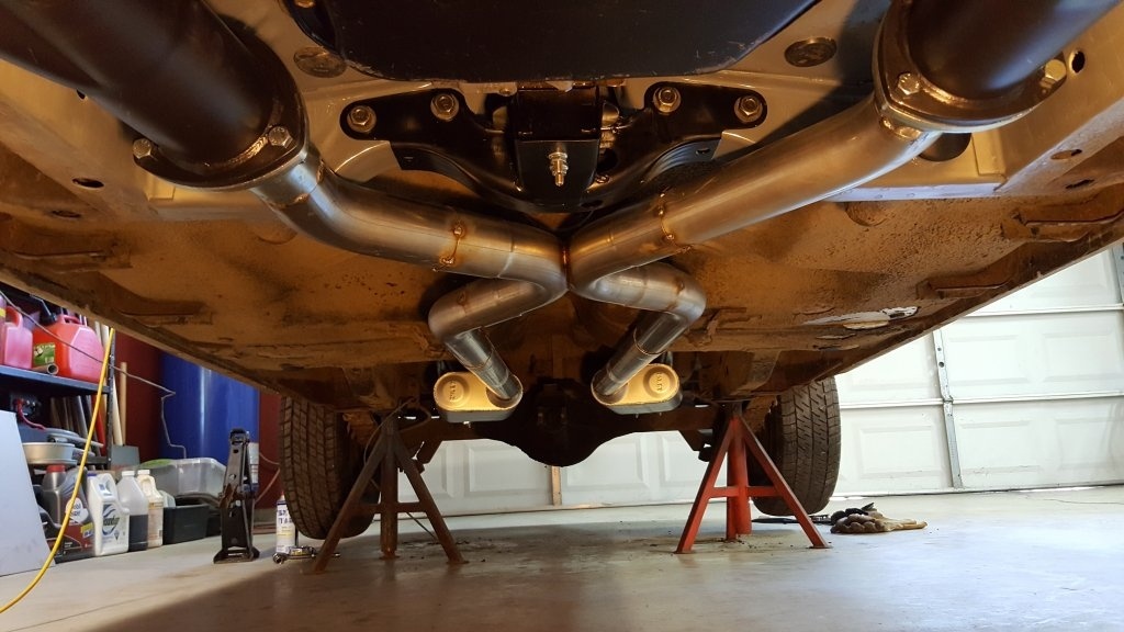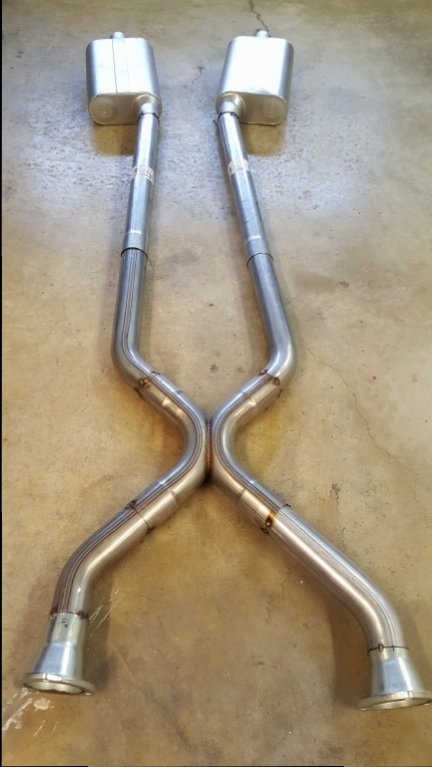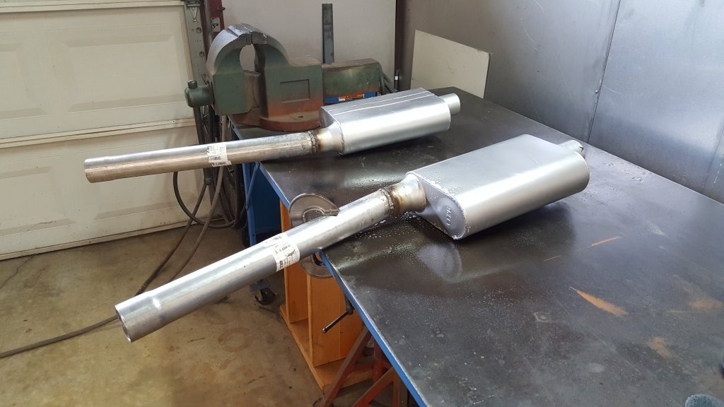Bought the X pipe, mufflers and misc. pieces from Jegs. Bought the tail pipes from Summit.