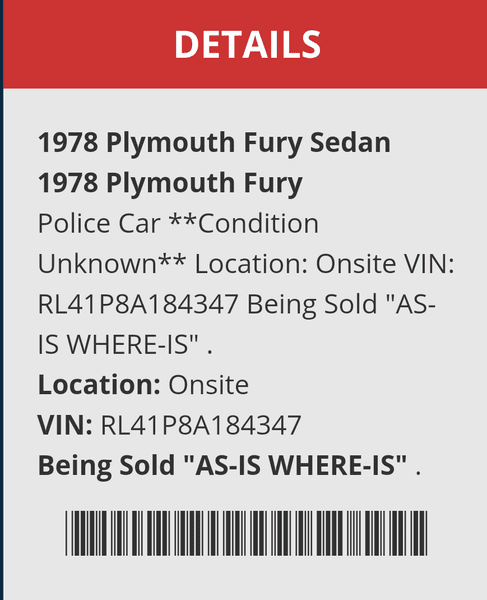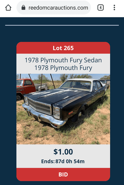 https://www.freedomcarauctions.com/auctions/7908/lot/191-1978-Plymouth-Fury-Sedan-1978-Plymouth-Fury