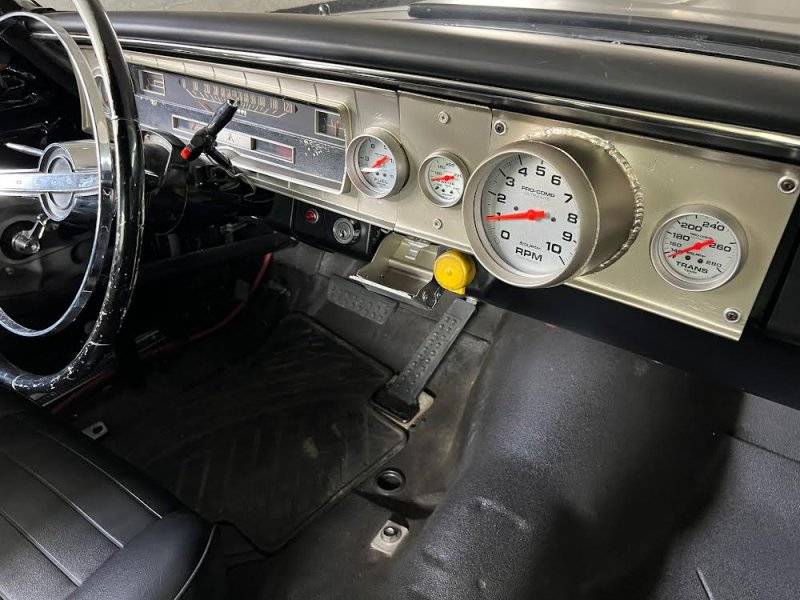 In place of what would be an obvious radio delete plate is a Autometer Ultra-Lite lightweight series 5" tach installed in its own 20 degree tilted aluminum casing. Excuse the shoddy silicone bead hiding the spot welds underneath.
