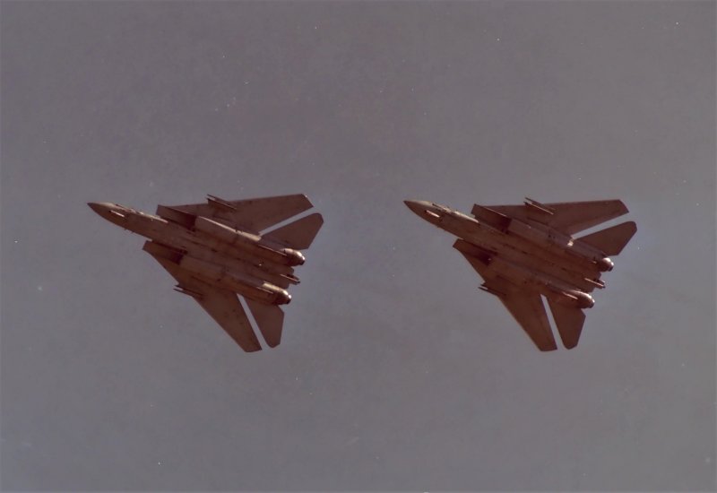 In this picture I took of one of the jets seen in the video, you can see the guy in the back seat waving at us.