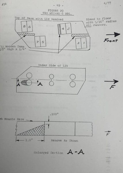 It's ok, no reason to apologize posting in an "old" thread, and I saw that Engine Masters episode and I believe they didn't tweak or tune the Holley 2bbl carbs enough to get the most out of the Wieand 6bbl intake.Bio, you've got to hunt up the Engine Masters test of three Sixpack manifolds, (including the weiand crossram). They HATED it! Three really smart guys, and between them couldn't get it to work. And the stock Eddie made more power everywhere.