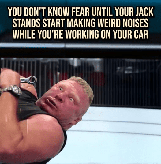 "a spotweld broke on a cheap Kragen's stamped steel Jack stands