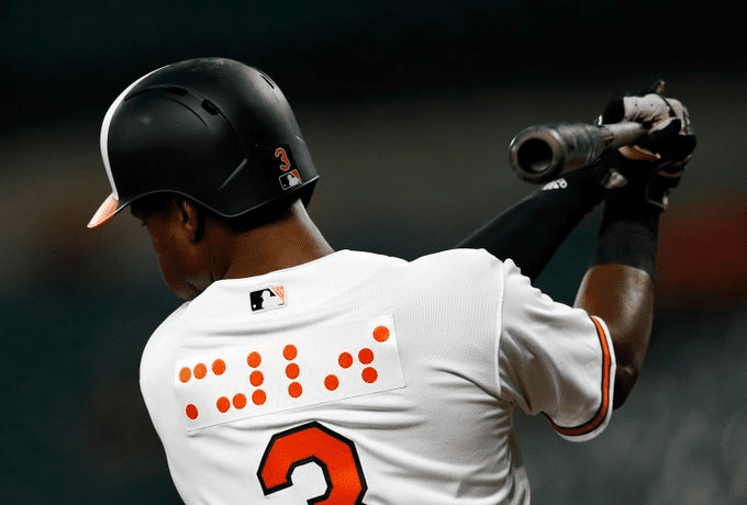No ... silly ... that is for the player's guide dog to read so that they know where the ball is.Do they think blind people will see it?