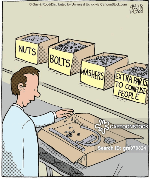 I was putting together a folding table once and the box came with a bunch of parts that had no relation to the job at hand. After a few hours of pulling hair and trying to make stuff make sense I finally called the company. Turned out the parts were for a completely different table. Go figure.
