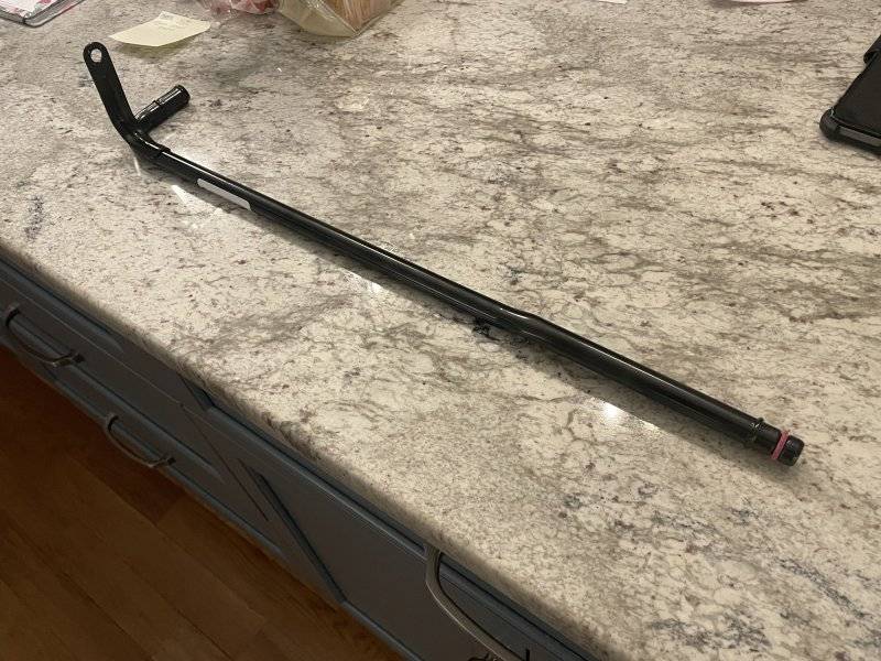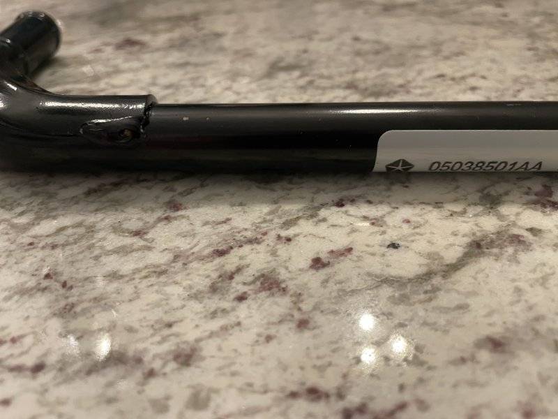 Couldn't you just solder or braze the pinhole, paint it and save the wait time to get a new one?Another little snag; after filling the radiator, the next morning I found a coolant leak at the back of the engine where the heater hoses attach to. I thought it was a loose hose clamp, but it turned out to be a pin hole where the bracket welds onto the tube. The intake manifold had to be pulled to get the tube out, which runs under the intake & into the water pump.