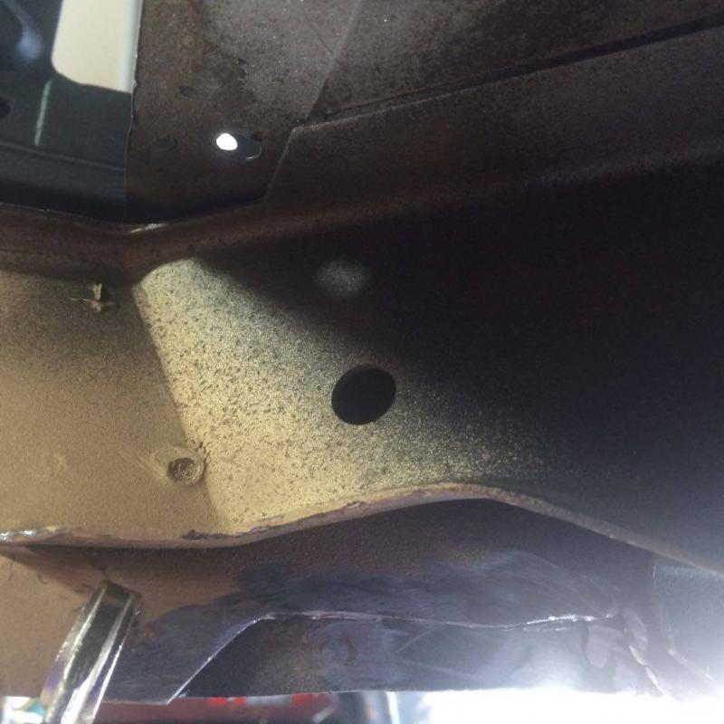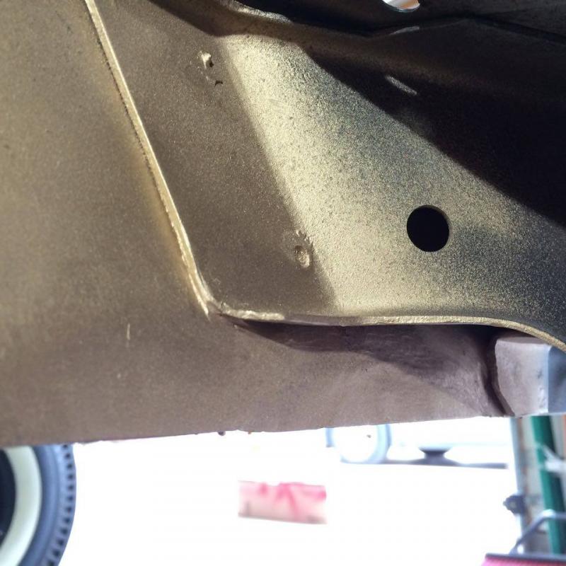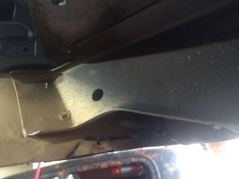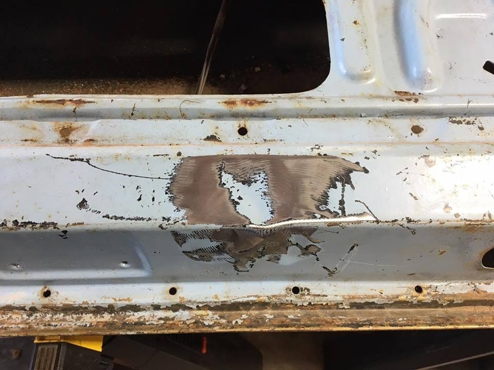 Filled in one of the holes on the side of the rear frame rail, its rotted on three sides.