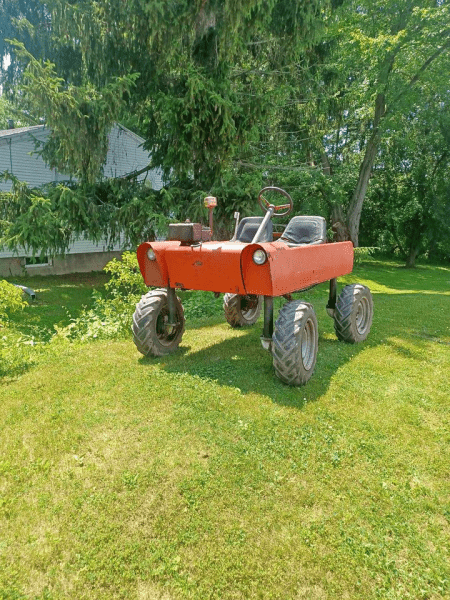 To me it looks like someone fabricated a body to look like a pedal car.