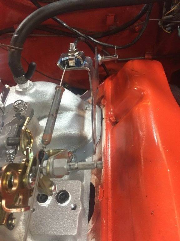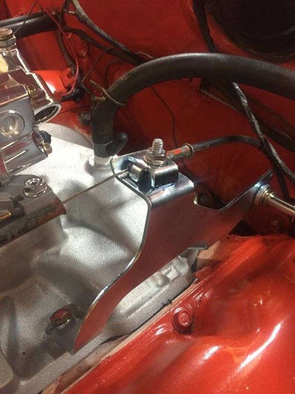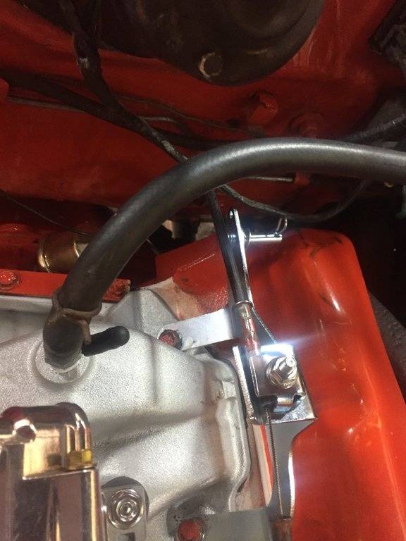 I have a 69 charger 383 4spd. I just installed a Edelbrock performer intake and Holley 4160 carb. I bought a bracket from eBay, the listing said it was designed for use with performer intake.