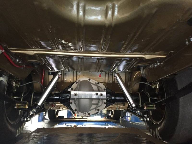 Back in place, will slip the new perches under and get it bolted up, on the wheels, set the pinion angle, tack in place, then pull it back out and weld/box them good, but thats tomorrow's job.