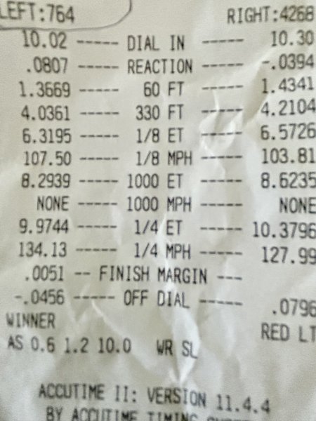 A step back. Well, the single carb combo was a definite increase for you. Another check on locating/removing unnecessary weight will pay off. With your weight of car and 505 have you considered a low gear set? It was a game changer for me. That and when I switched from the 9” converter to the 8”.Good to hear your Grandson has a good work ethic, he will go far in life. Three of my kids worked on dairy farms as teenagers and I think it was a big plus for them to understand how the world works. Or let at least how it should. I'm taking a step back from my 64 not sure what to do next.