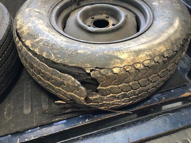 Another B F Goodrich bite the dust. 90% tread. Just blew out sitting still.