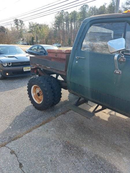 Fender mirror on pass side too, not in picture: pretty solid truck considering: rockers solid, rear cab corners no rust, doors lower fenders normal rust, top front of cab solid, surface rust only: chop & weld not THAT great. Unable to open doors to see floors etc. 4x4 4spd truckReally like the fender mounted mirror