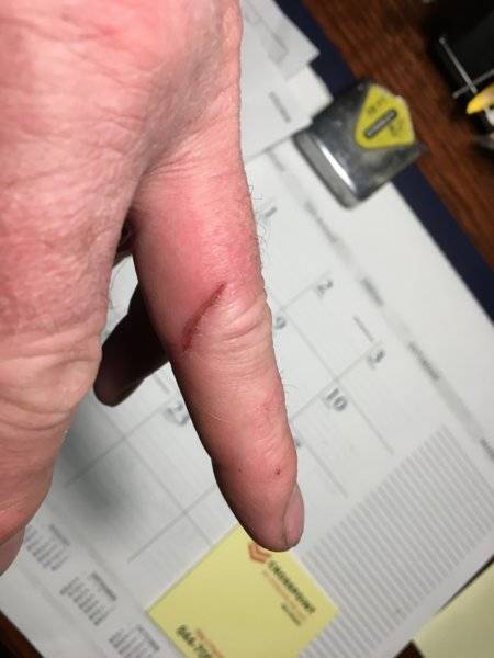 I took a 4 1/2 inch cut off wheel to the left middle finger just yesterday. It went through the leather glove like it wasn't even there. Didn't feel a thing. :rolleyes:
