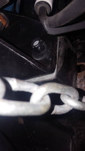 Then install a machine screw all the way through it and put a self locking nut on the other side with about an eight inch slack.